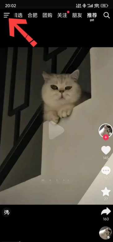 1. 打開抖音,輕點右上角的三條橫線圖標。