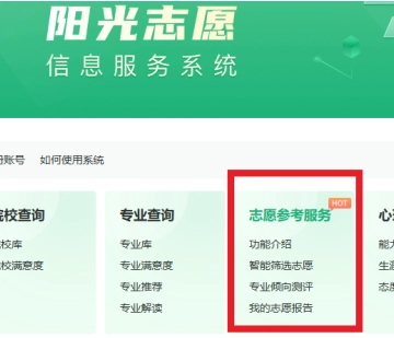 1. 點擊上方官網進入,接著點擊【志愿參考服務】進入。