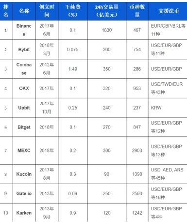 據CMC所示,評分位居前十的交易所如下: