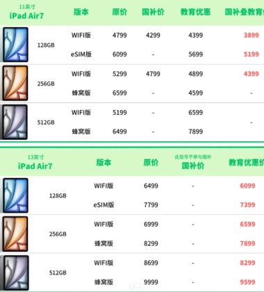 倘若今年返?;顒幽軌虔B加國補,那就表明 MacBook Air M4 僅需 5799 元就能到手,而且還能免費獲得一套 AirPods 4 。iPad Air M3 僅需 3899 元便可入手,同時還會免費贈送一根 Apple Pencil Pro 。