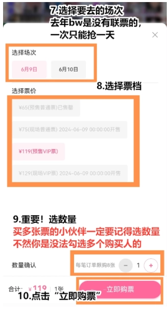 6,選擇要去的場次,價位,數量然后點擊立即購票;