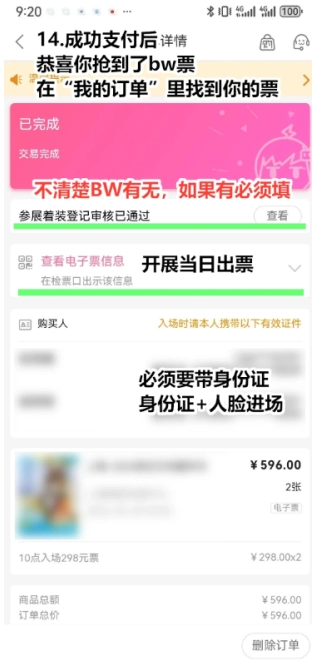 9,購票成功后再我的訂單里面可以找到票,入場必須帶身份證哈;