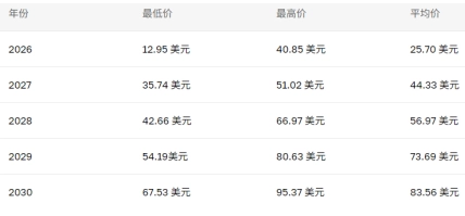 2026年到2030年的價格預測: