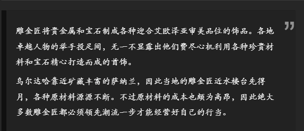 雕金匠堪稱能工巧匠,他們主要以雕金錘為關(guān)鍵工具,由此開(kāi)啟一段創(chuàng)作征程。此地有著各種各樣的礦石以及原石,這些皆由礦工采集而來(lái),最終都將成為創(chuàng)作的基礎(chǔ),在雕金匠手中即刻被賦予全新的生命。