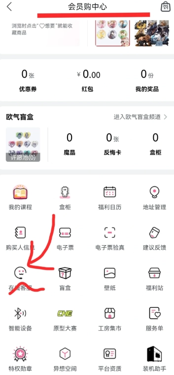 1. 打開會員購中心,向下滑動頁面,找到【在線客服】。