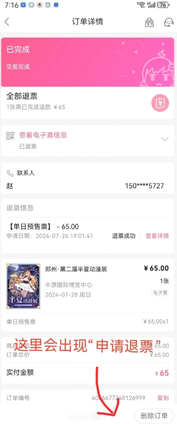 需留意,只有在交尾款當日,你完成尾款繳納后,才能夠進行退款操作。