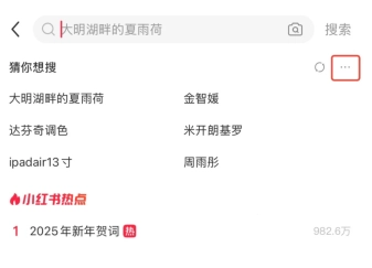 1. 開啟小紅書,輕點搜索框所在位置,接著點擊右側的三個小點進入。