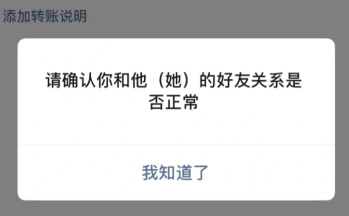 2. 轉賬操作:向對方進行轉賬時,若顯示“不是收款方好友”,此情況對應刪除操作(如圖3所示);若顯示“好友關系是否正常”,這種情況則對應拉黑操作(如圖4所示)。