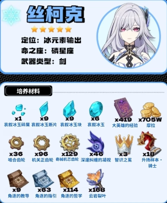 絲柯克身為冰系強(qiáng)力主C,無論是數(shù)值還是輸出能力都相當(dāng)出色。倘若萌新玩家缺少強(qiáng)力主C,不妨考慮抽取絲柯克,后續(xù)再逐步補(bǔ)齊合適的隊(duì)友。畢竟,絲柯克的輸出表現(xiàn)極為可觀。