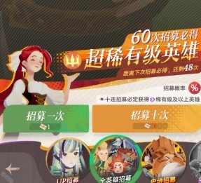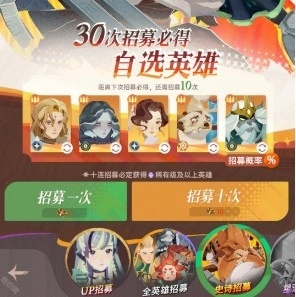1、于全英雄招募時,單次招募能夠獲取5個多莉的集換券