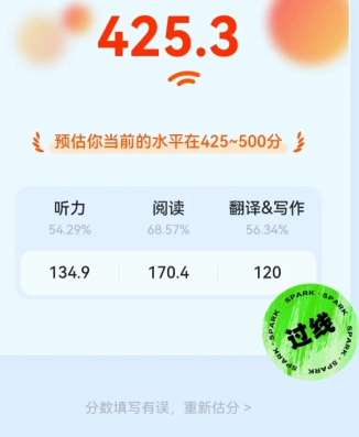 四六級考試結束啦,大家考得如何?是不是考完就想趕緊用星火英語app估分呢?但不少小伙伴還不清楚星火英語的估分系統在哪兒,也不確定估分到底準不準。別著急,接下來就跟著小編一起看看星火英語的估分教程吧。