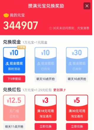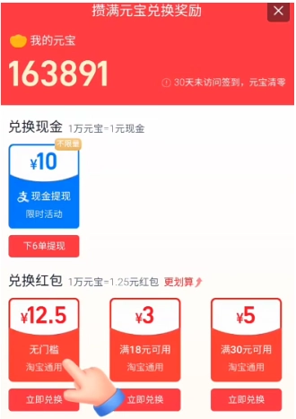 大家有沒有在玩淘寶簽到紅包呀?當積累到一定數量的元寶后,就能直接提現啦。像10元紅包,有些小伙伴能直接提現,有些則得下一單才行。12.5元的紅包雖然可以直接提現,不過很難搶到。接下來,就跟小編一同瞧瞧淘寶簽到紅包的提現攻略吧。