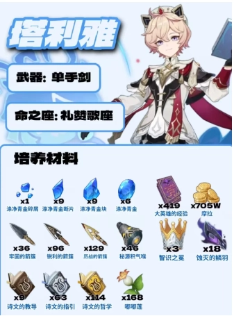 原神塔利雅的相關材料,將于6月18日伴隨5.7版本正式上線。塔利雅是一名四星水系單手劍角色,隸屬于蒙德西風教會,在教會中擔任助祭。不少小伙伴都打算在版本更新后抽卡獲取她,那么,原神塔利雅的培養材料具體有哪些?這個角色值得抽取嗎?接下來,就和小編一同了解一下吧。