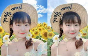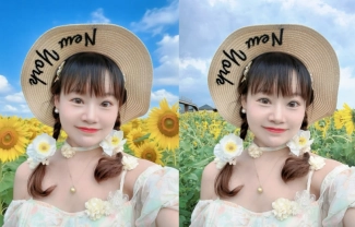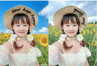 圖三與圖四的豆包指令為:維持人物的細節與姿勢不變,將背景P成滿是向日葵,營造出風和日麗、藍天白云的氛圍。