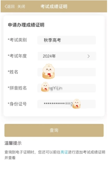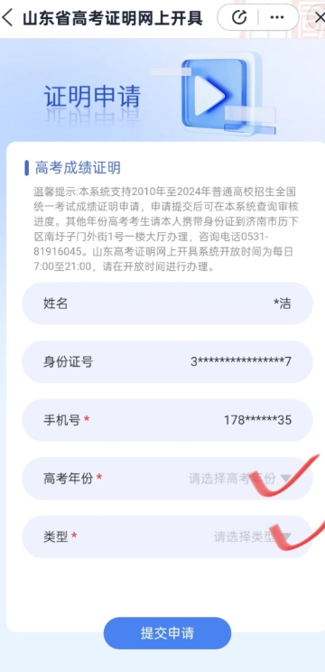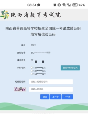 4. 輸入高考年份以及省份證號(最早能查詢到2008年的相關信息)