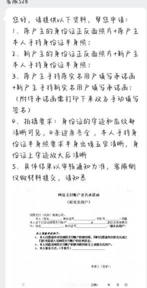 給大家講講我的狀況。前段時間我在藏寶閣賣了個賬號,之后發(fā)現(xiàn)網(wǎng)易支付的實名認(rèn)證并非本人,而是手機(jī)號前號主的,導(dǎo)致錢無法提現(xiàn)。若要更改實名認(rèn)證,唯一辦法是聯(lián)系原號主注銷賬號,可我根本聯(lián)系不上,無奈之下,只好去找客服幫忙解決。