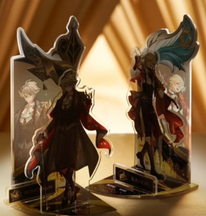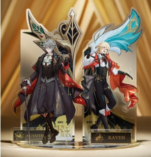 周邊涵蓋:吧唧、立牌(艾爾海森與卡維的雙人立牌,且能夠拆卸)、杯套、手提袋以及相卡