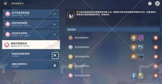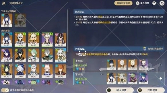 可選擇積分倍率×40 (依據不同目標,該倍率也能適度調低)。推薦充分利用夜蘭的優勢展開挑戰。上半場挑選與夜蘭適配的火系主C ,借助蒸發反應獲取分數;下半場鑒于要應對丘丘巖盔王,既能夠啟用巖系角色來打破其護盾,也能選擇實力強勁的支援角色希諾寧或者鐘離。