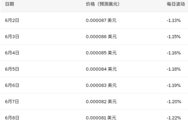 以下是2025年6月2日到6月8日這一周Floki Coin的價格預測: