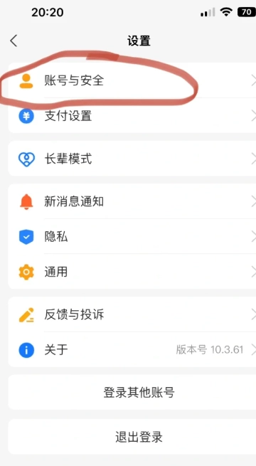 2. 依次點擊“我的” - “設(shè)置” - “賬號與安全” - “名下其他賬號”