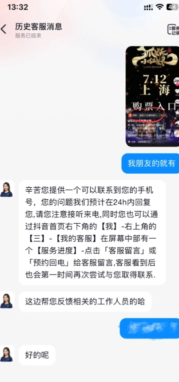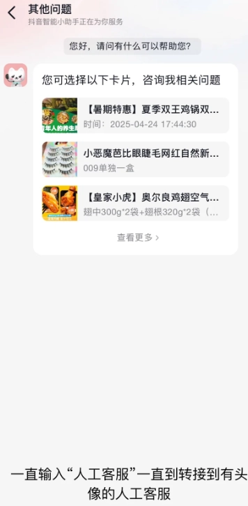 5,持續輸入“人工客服”,直至成功轉接到帶有頭像的人工客服。