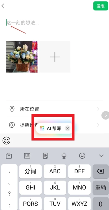 1. 若要添加圖片或轉發推文至朋友圈,只需點擊輸入框,AI幫寫功能便會出現。