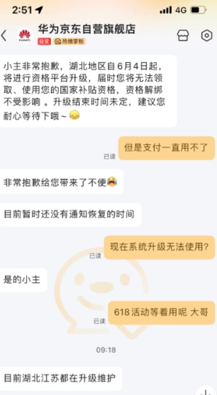 3. 系統(tǒng)升級過程中出現(xiàn)了bug,與此同時,國補政策的調(diào)整引發(fā)了諸多不滿。