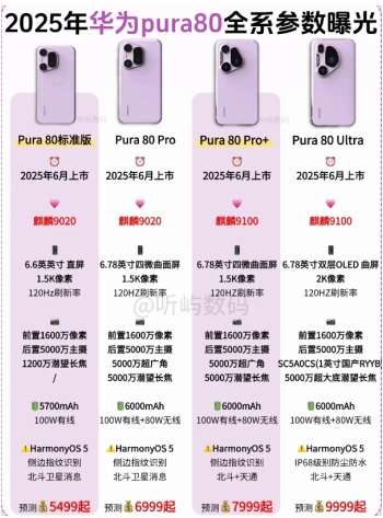 ? P80:配備麒麟9100處理器,與鴻蒙星河版操作系統協同工作,CPU多核性能提高25%,GPU圖形渲染效率增強35% 。