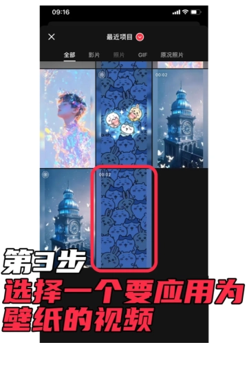 3. 挑選一個準備應用為壁紙的視頻(無論是視頻還是live圖片均可)