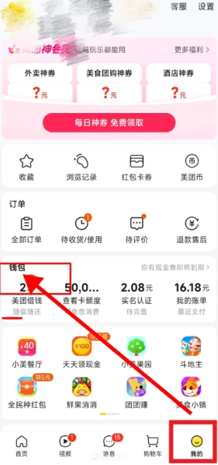 1. 打開美團應用程序,點擊“我的”,接著點擊“錢包”進入。