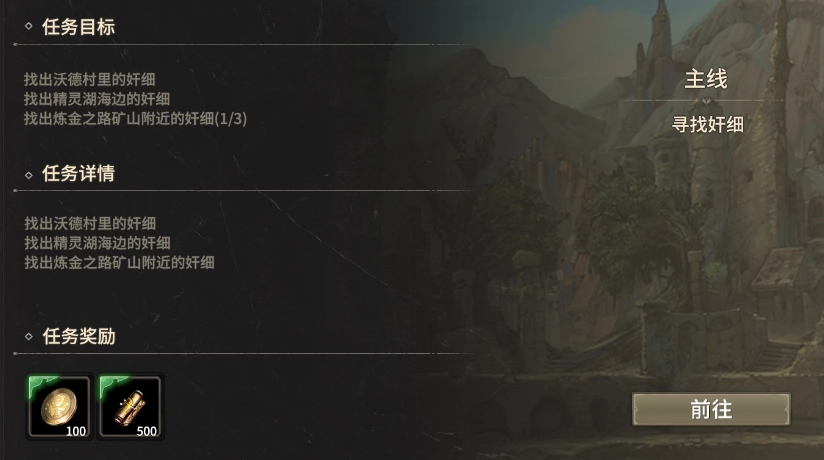 任務目的:打敗位于沃德村、精靈湖以及煉金之路的3名可疑士兵。