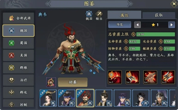 在游戲中,于禁屬于魏國陣營,是一名輸出型武將。他的必殺技能“四海八荒”,可以向敵方單個目標(biāo)釋放高額傷害。特別要指出的是,此傷害還會依據(jù)自身2%生命上限額外增添傷害,同時能使目標(biāo)進(jìn)入追蹤狀態(tài)。該追蹤狀態(tài)的效果是有效削減目標(biāo)的閃避能力,讓于禁后續(xù)攻擊更易精準(zhǔn)命中敵方要害。再瞧瞧他的主動技能,同樣是針對敵方單個目標(biāo)展開攻擊,而且在攻擊時存在一定幾率給目標(biāo)附加攻擊降低狀態(tài),此狀態(tài)可持續(xù)兩個回合。