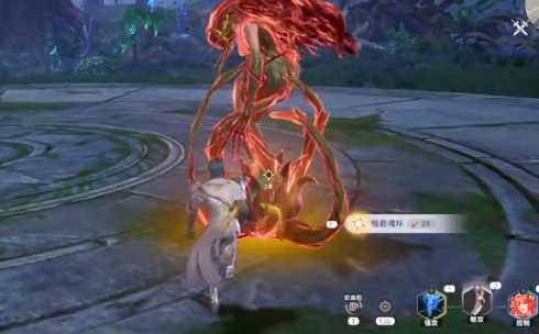 此刻,玩家需憑借靈活走位,巧妙避開攻擊。瞅準時機后,即刻迅猛出擊,歷經(jīng)一番激斗,終是戰(zhàn)勝妖魂野花。緊接著,周圍會浮現(xiàn)吸收魂環(huán)的提示,玩家只需走上前去,便能開啟吸收過程,魂環(huán)的力量也會隨之注入獵魂者體內。