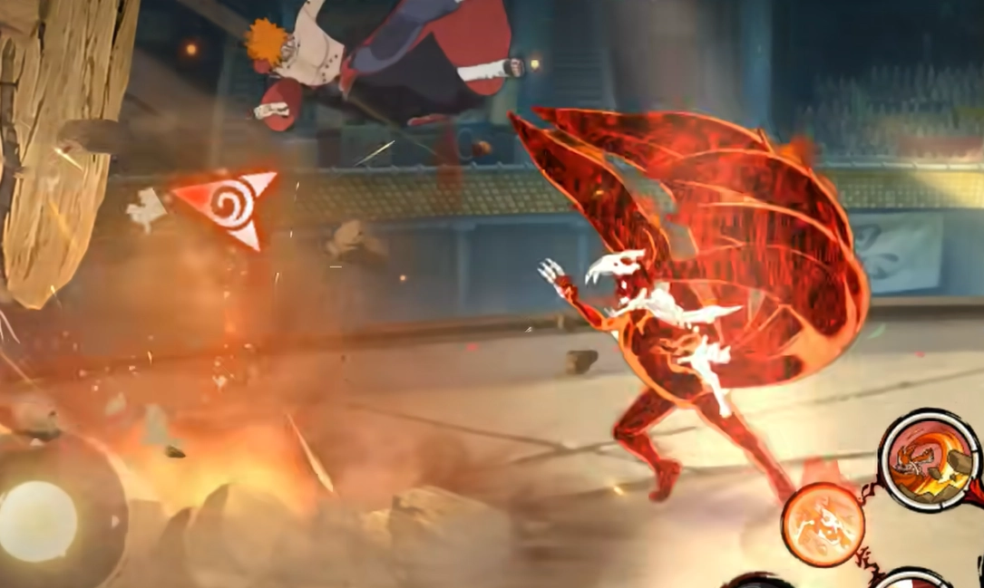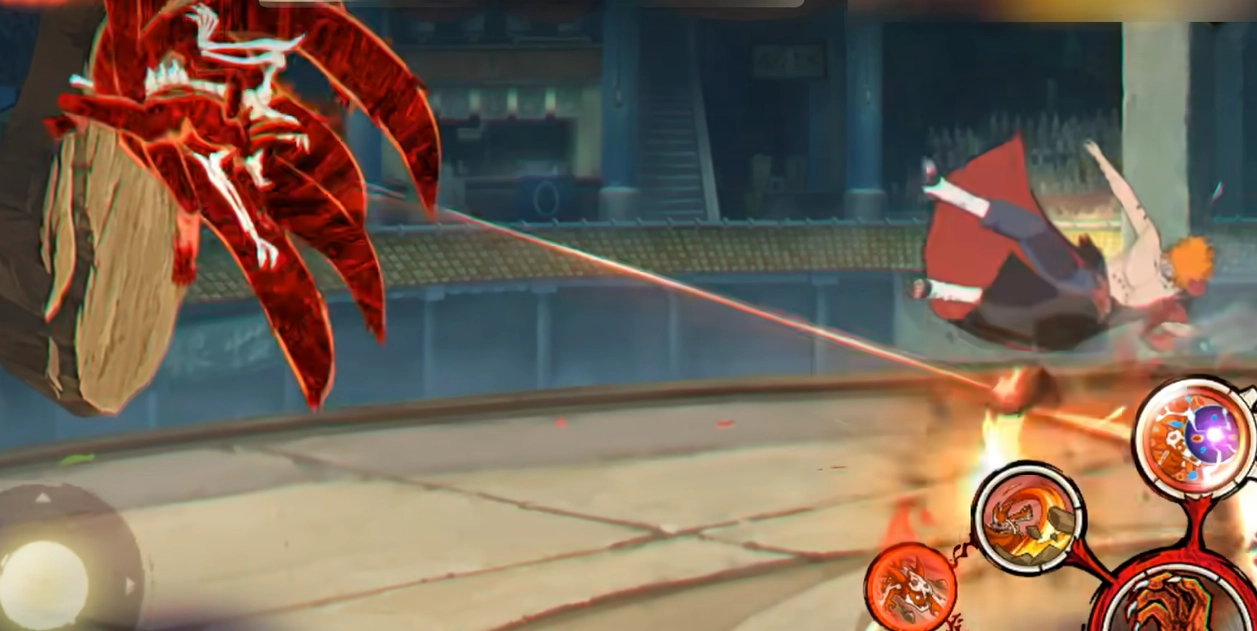 下面,我們仔細(xì)瞧瞧鳴人暴怒第六尾形態(tài)的技能。首個(gè)技能能讓鳴人在存在地形的屏幕范圍內(nèi),于地形間實(shí)現(xiàn)快速位移。當(dāng)使用該技能,鳴人可在戰(zhàn)場上迅速穿梭,借此拉開與敵人的距離,亦或快速靠近敵人。要是屏幕內(nèi)有多處地形,他會(huì)優(yōu)先挑選側(cè)板邊或上板邊,而移動(dòng)方向則由玩家通過搖桿操控。