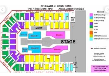 搶票渠道:Cityline與大麥。2018年票價參考:888、1388、1888、2088、2488 。下方為2018年座位圖,可供參考。