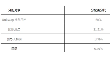 UNI幣初始供應(yīng)量為10億枚,這些幣分配給了Uniswap的社群成員、團(tuán)隊(duì)人員以及投資者,還有一部分作為流動性挖礦獎勵(lì),分發(fā)給了提供流動性的用戶。