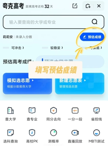2, 填寫高考地區(qū)和預(yù)估成績;