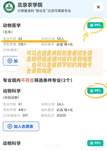首先,需點(diǎn)擊進(jìn)去查看專業(yè)概率,學(xué)校所給出的概率只會(huì)依據(jù)最低的專業(yè)概率。在此,個(gè)人建議,穩(wěn)妥起見,選擇概率在90%以上的,這樣能夠盡可能地對(duì)當(dāng)年的浮動(dòng)進(jìn)行容差處理。