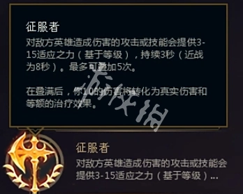 征服者(疊滿后提升攻擊力+吸血,增強持續作戰能力)