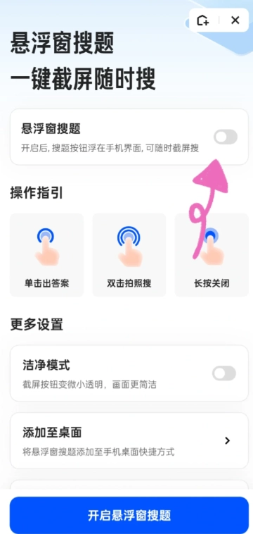 3. 開啟懸浮窗搜題按鈕。