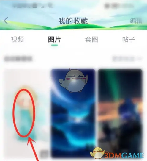 2. 進入收藏圖片列表,找尋需保存的圖片,接著在該圖片上長按。