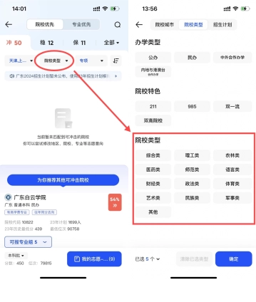 當前,夸克高考能夠支持對普通類非特殊批次藝術類院校的查詢。你可以通過篩選【院校類型】,選擇自己所需的專業類來查看相關信息。接下來,一起看一下具體的使用步驟: