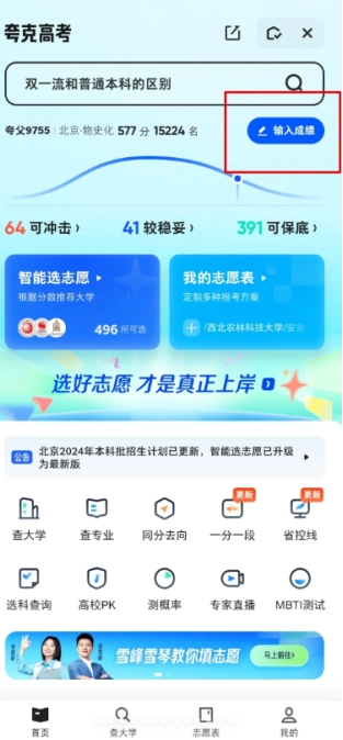 1,進入夸克高考頻道,選擇省市地區,輸入成績信息,找不到的點擊更多--夸克高考進入;