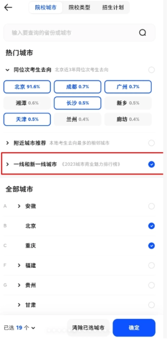 9. 制作一份涵蓋“沖穩保”的志愿表。具體操作是,逐一點擊院校名稱,詳細了解院校所處城市、資質、特色專業以及碩博點數量等信息。隨后,依據個人偏好,將“沖”“穩”“保”這三部分志愿由上至下完成最終排序。