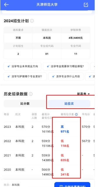 7. 對比往年該專業的錄取位次,對于那些無法確保能被錄取的院校專業(具體指近三年專業錄取位次高于或等于自身位次的,或者雖比自身位次略低但錄取人數極少的),倘若該專業組內只要有任意一個專業是自己不能接受的,那就堅決放棄。要知道,這是基于數據得出的結論,千萬不要心存僥幸,盲目相信運氣。不信邪執意冒險的話,很可能出現你報臨床卻被調劑到護理,報計算機卻被調劑到中文這類情況。