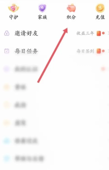 2. 進入后,點擊箭頭所指的【積分】進入。