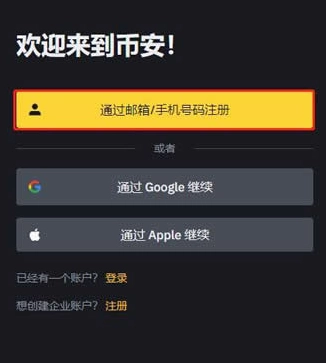 1、打開幣安官網(wǎng)(點擊注冊),點擊左側的【使用郵箱/手機號注冊】
