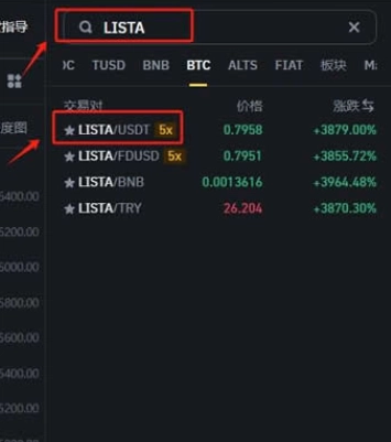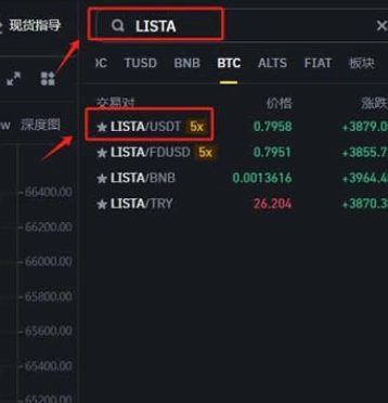 8、搜索幣種簡稱【LISTA】,選擇【LISTA/USDT】交易對