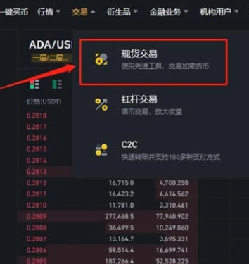 7、點擊上方導航欄的【交易】【現(xiàn)貨交易】