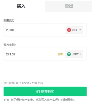 在C2C頁面,選擇購買USDT,輸入購買金額或數量。